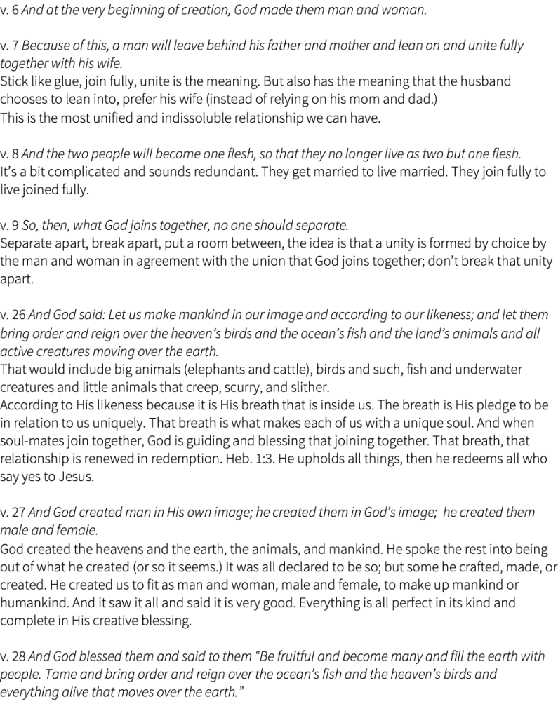 Pastor Rick’s Study Notes – Mark 10:6-9, Genesis 1:26-28
